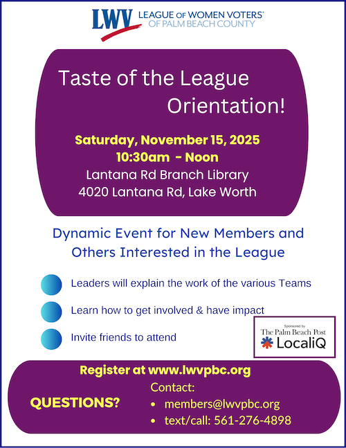 This is a FREE event for new members and others interested in the League of Women Voters.
