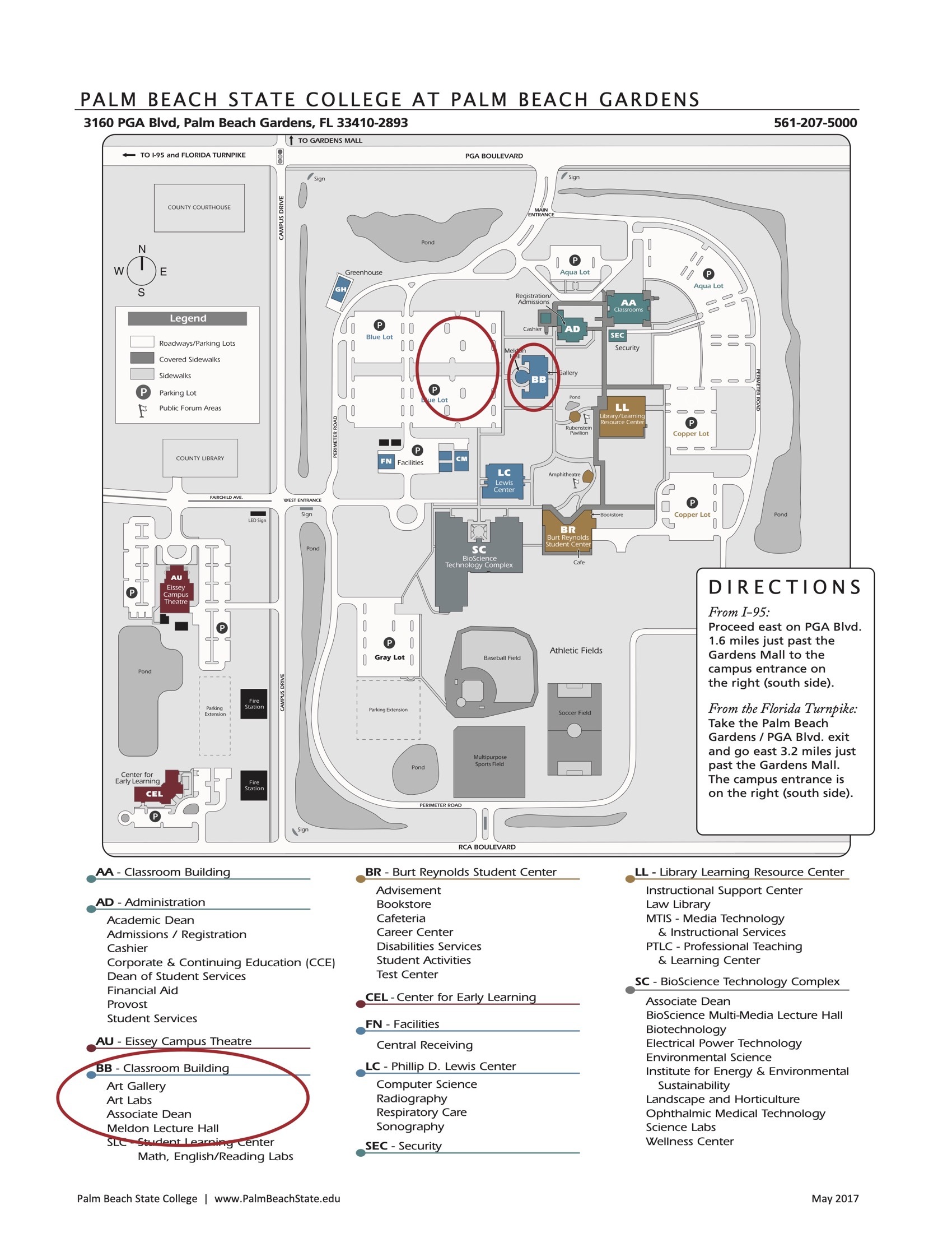 Click Here to see the map of Palm Beach State College, Palm Beach Gardens Campus and Meldon Hall (circled in red).