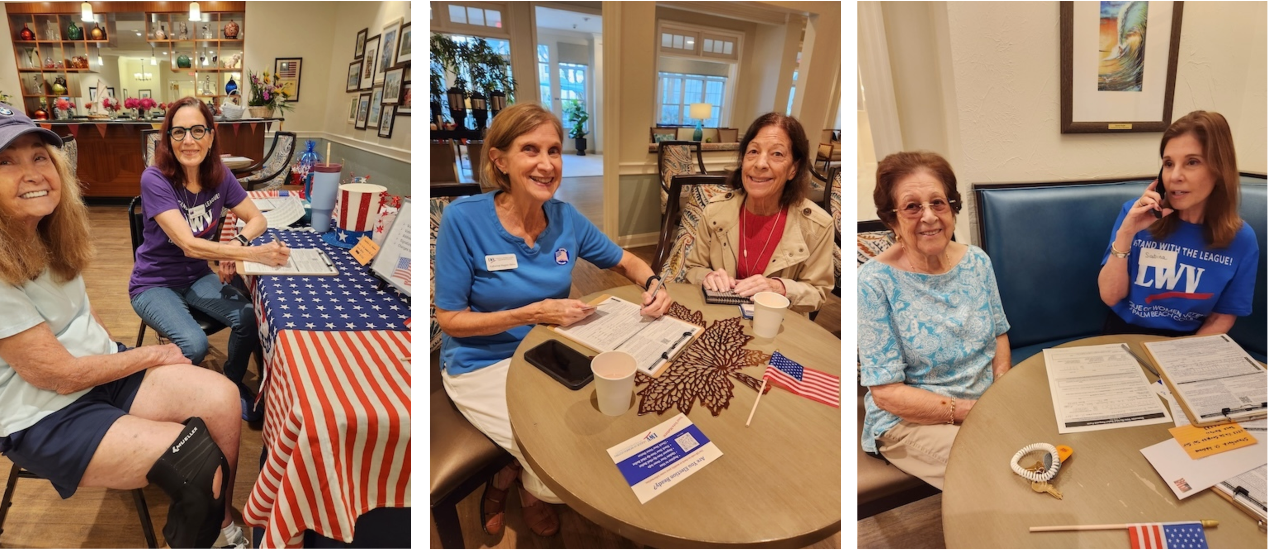 | Judy Giller, LWVPBC Voter Services chair, hosted a cookie exchange at her home in Boca Raton, for her team. Above: Susan LaDuca, Pam Maldonado, Nancy Ballen, Chris Allen and Rochelle Shapiro. Below; Frankie Wilson, Katie Beer and Judy Giller. | VOTER SERVICES HELPS AT SENIOR RESIDENCE | At Stratford Court retirement community in Boca Raton, Voter Services members Monica Kramer, Katherine Wagner-Reis (the team leader), Sabina Fernandez and others assisted residents with voter registration and updating their vote-by-mail applications. Photos by Libby Jacobs | Saturday, Feb. 7, from 10 a.m. to noon